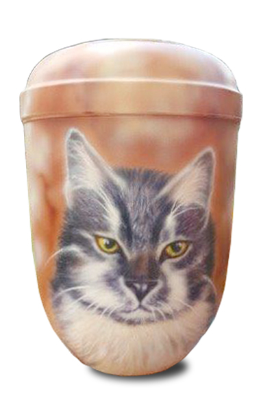 Auf einer Naturstoff- oder Stahlurne ein Motiv in Airbrush-Technik.