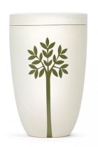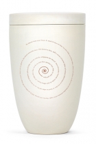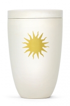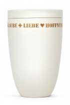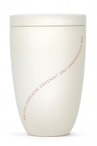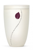Die helle Farbe und die schlichte Form des Gefäßes sollen einen leichten, lichten Raum erschaffen, in dem die Asche eines Menschen in den Kreislauf von Leben und Sterben zurückgeführt werden kann.